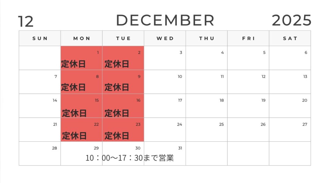 また年始は2026年1月1日(木)〜1月6日(火)までお休みをいただき